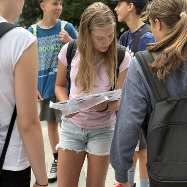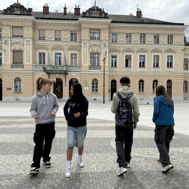 Scopri di più sul progettoLe visite guidate della città sono condotte da una coppia bilingue di studenti della scuola elementare (classi 7-9), uno studente della scuola VP e uno della scuola PP, con la supervisione e l'accompagnamento di una guida professionista esterna